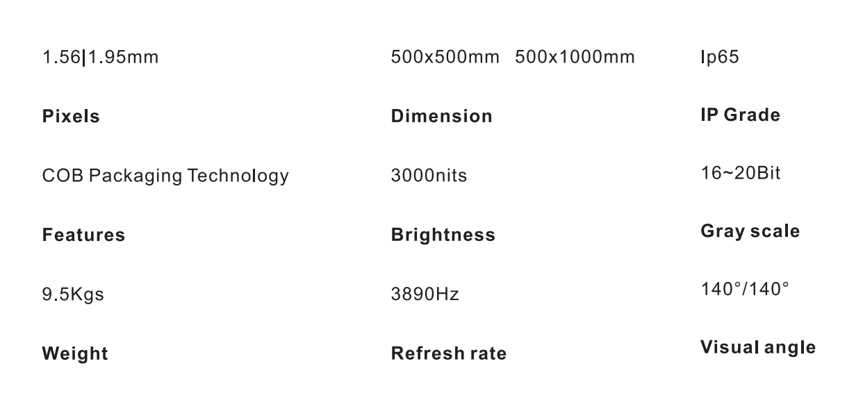| COB Packaging Technology | 3000nits | 16~20Bit | |
