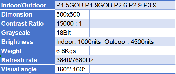 P1.5GOB P1.9GOB P2.6 P2.9 P3.9