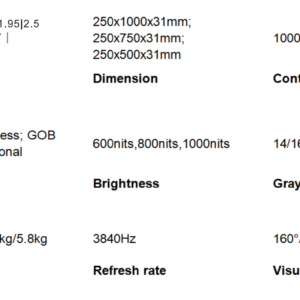 | Item | P1.56 | P1.95 | P2.5 | P2.604 | P2.976 | P3.91 |