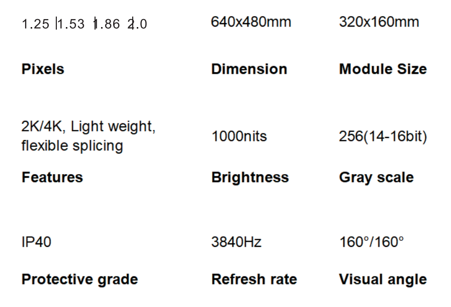 2K/4K, Light weight, flexible splicing1000nits256(14-16bit)