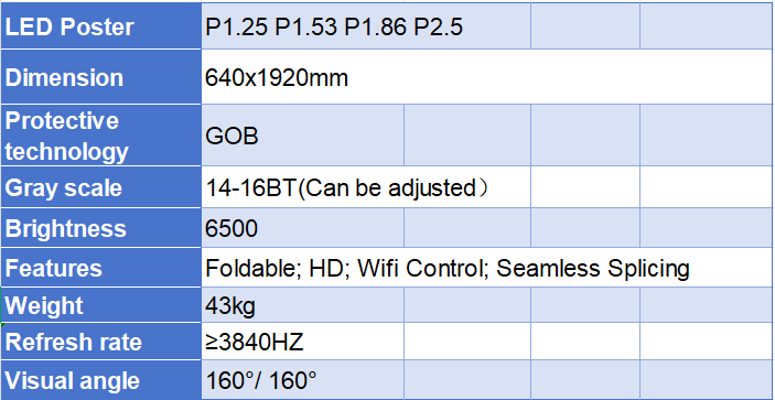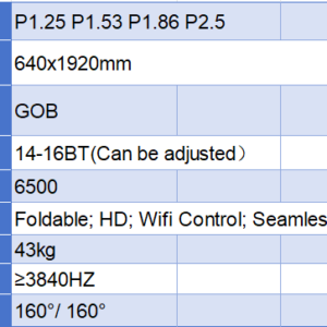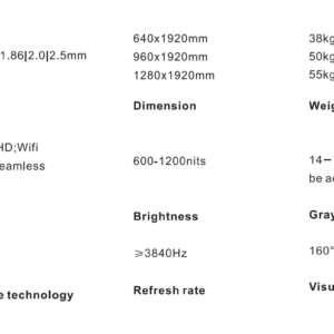 Display module | Pixel spacing | 2.5mm | 1.86mm | 1.538mm | 1.25mm |