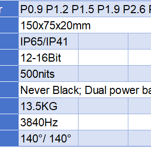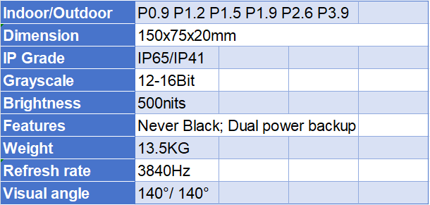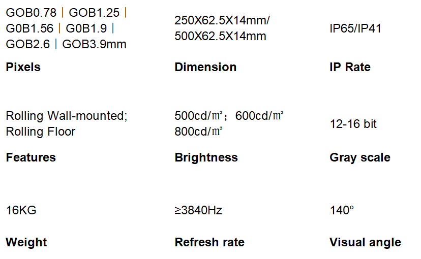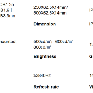 | Refresh | ≥3840 Hz | ≥3840 Hz | ≥3840 Hz | ≥3840 Hz | ≥3840 Hz | ≥3840 Hz |