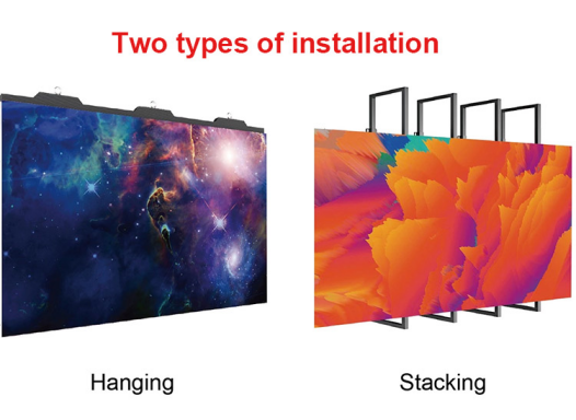 • Fixed installation: Truss fixed installation is the most common way to rent LED screens indoors and outdoors. First build the steel frame, and then assemble the LED display by stacking it. The quick locking design greatly saves installation time. The LED box can also be installed at the end of the event. Quick disassembly afterwards.