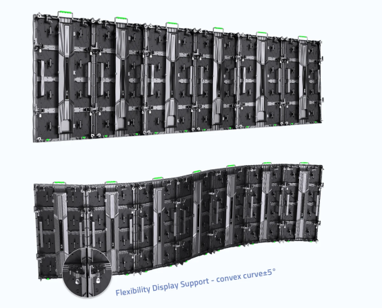 • Arc installation: High-precision arc lock allows easy arc installation, suitable for inner and outer arcs to achieve convex and concave LED screen effects.